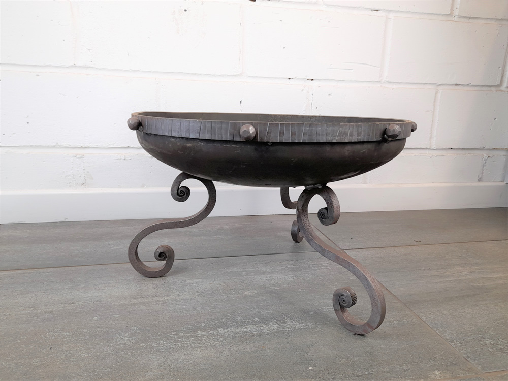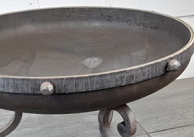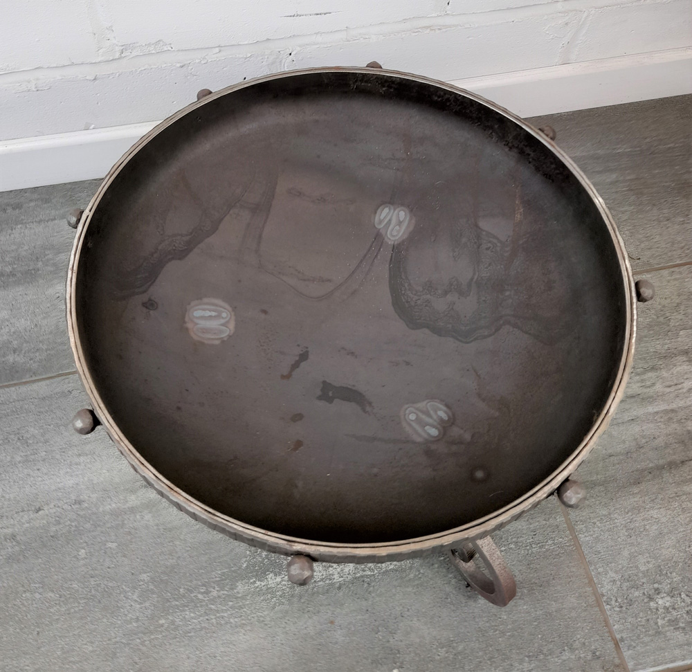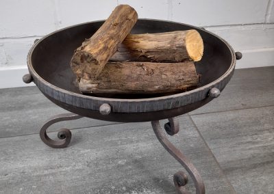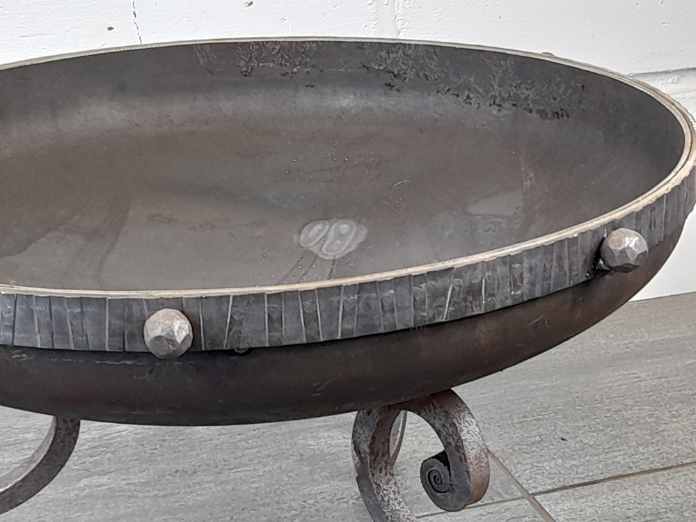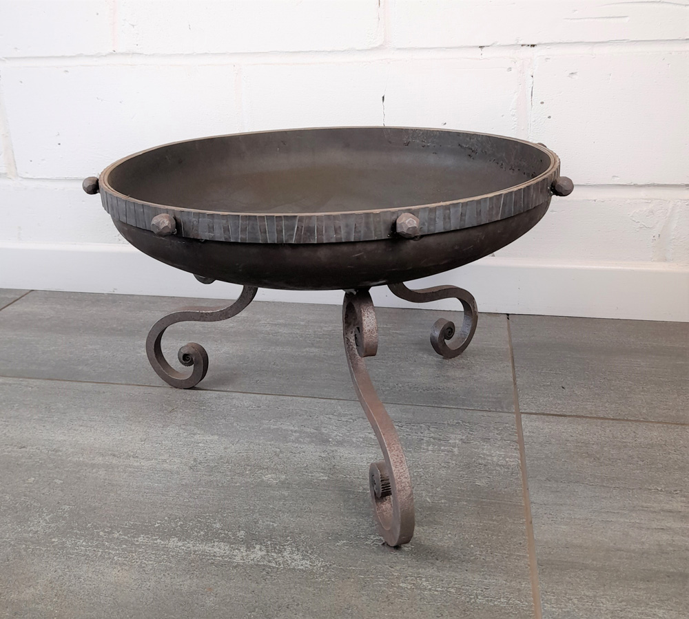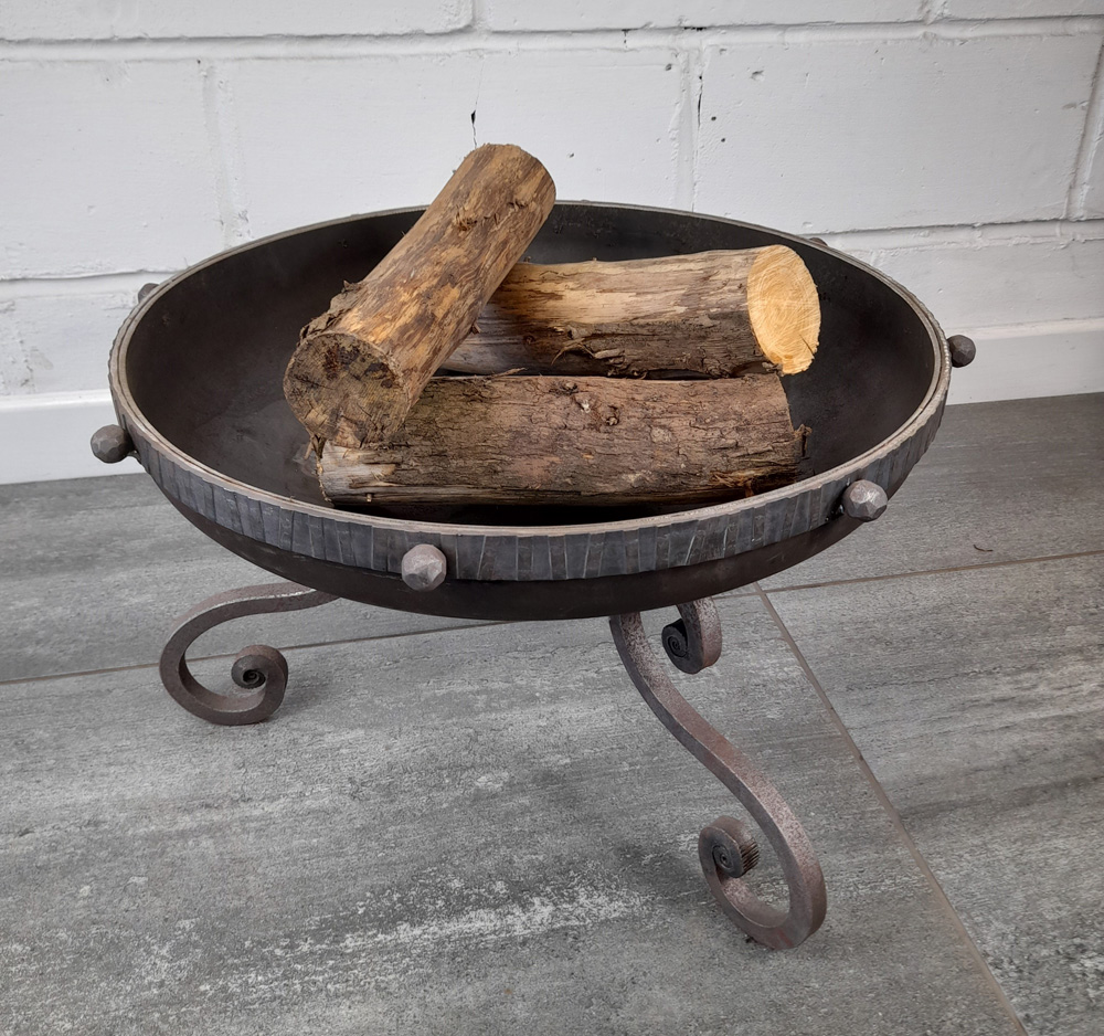 Small fire pit fabricated from mild steel.