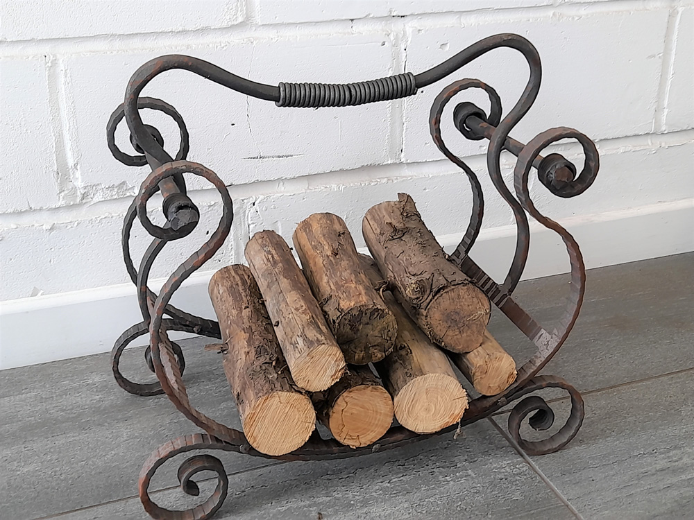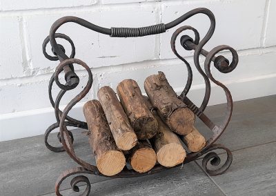 Log Holder – 530 £ 85.60 non-coated / £ 125.60 powder coated finish Made from mild steel. Shown as self-coloured in the photos but can be powder coated in a colour of your choice upon request. Measurements: 490mm high x 530mm wide.