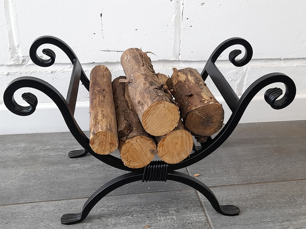 Log Holder – 570 £ 119.70 Made from mild steel with a black powder coated finish. Measurements: 355mm high x 570mm wide
